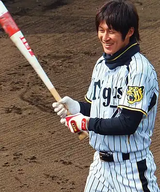 Shunsuke Fujikawa (藤川 俊介, Fujikawa Shunsuke), known simply as Shunsuke (俊介, Shunsuke) to some fans, is a Japanese professional baseball outfielder. He was born on August 17, 1987, in Fukuoka, Japan. He is currently playing for the Hanshin Tigers of the NPB.[1]