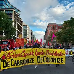 In October 2022, ShutDownDC organized a coalition of organizations for a week of actions surrounding the annual meetings of the IMF and World Bank. The coalition used the slogan "For People, For Planet: Decarbonize & Decolonize."[35] Demands included an end to fossil fuel investment by the institutions, as well as the canceling of debts held by countries in the Global South.[36]