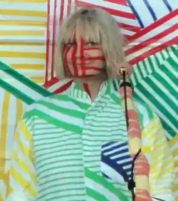 Sia's voice has been described as "deep, playful, and powerful".[154] In her 2016 live performances, Sia's music was part of performance-art-like shows that involved dance and theatrical effects.[110][155] An MTV News writer opined that "Sia's throaty, slurred vocals are her norm",[156] while a contributor to The Fader noted that "in the Billboard Hot 100 landscape, Sia's songwriting voice, which deals with depression and addiction, is singular – her actual voice even more so."[157] Everyday Is Christmas (2017), Sia's first release of Christmas music, is a pop album that gives old-fashioned holiday music "some 21st century pop gloss"[158] and is made for those who grow tired of the classics.[159] Music – Songs from and Inspired by the Motion Picture (2021) further developed Sia's pop music catalogue, with the album incorporating more electropop and reggae, alongside R&B and EDM.[160] National Public Radio called Sia "the 21st century's most resilient songwriter".[161]