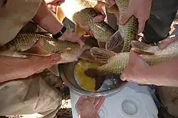 The fish was once an important food source to the Eastern Band of Cherokee Indians before it nearly disappeared in the 1970s and 1980s.[3] A number of groups and agencies are attempting to preserve the fish, including the N.C. Wildlife Resources Commission, Duke Energy, the Tennessee Valley Authority, the Eastern Band of Cherokee Indians, the Georgia Department of Natural Resources, and the U.S. Fish and Wildlife Service.[5]