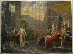 When a dispute arose within Arsinoe's followers, she was urged by Ganymede to call upon the execution of Achillas suggesting he would betray them.[29] The two then successfully arranged his murder, and upon his death, Ganymede assumed command of the army.[29][18]