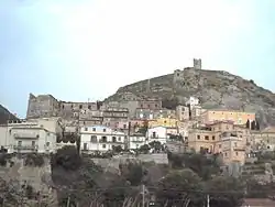 Amantea as seen from the sea. On the left, the strategic high ground of Camolo. | |||||||
