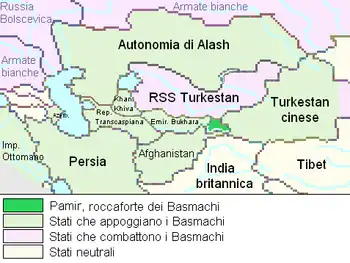 Areas effected by the Basmachi rebellion in green | |||||||||
