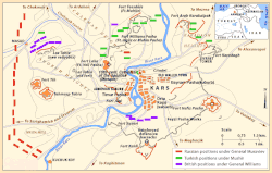The siege of Kars was the last major operation of the Crimean War. In June 1855, attempting to alleviate pressure on the defence of Sevastopol, Emperor Alexander II ordered General Nikolay Muravyov to lead his troops against areas of Ottoman interest in Asia Minor. Uniting disparate contingents under his command into a strong corps of 25,725 soldiers, 96 light guns,[4] Muravyov decided to attack Kars, the most important fortress of Eastern Anatolia.