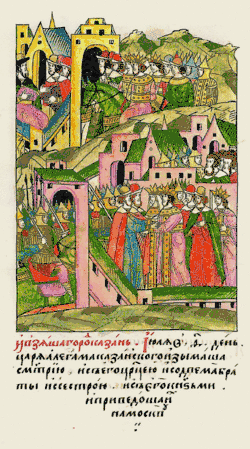 ![]() The capture of Kazan on 9 July 1487. Depiction from the Illustrated Chronicle (1567). | |||||||||