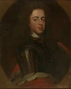Following the neutralisation of the French threat, Marlborough and Eugene directed a force under the Prince of Orange to surround the city of Mons, which was done on 19 and 20 September.[16] The Prince's force comprised approximately 30 battalions, of which at least 14 were Dutch and 4 were British, and 33 squadrons amounting to around 10,000 soldiers.[17][1] On the orders of Boufflers, three French battalions had successfully slipped through the Allied lines from Malplaquet to reinforce Mons.[5] On 24 September, the Prince attacked the outer-works of the fortress. The following day, Eugene arrived at Mons with the main siege corps of the Allied army.[12] Boufflers received orders from Louis to not risk another battle, and therefore no attempt was made by the French to relieve Mons once the siege was underway.[5]