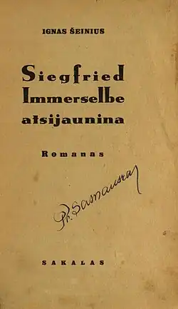Siegfried Immerselbe Rejuvenates (Lithuanian: Siegfried Immerselbe atsijaunina), also known as The Rejuvenation of Siegfried Immerselbe, is a novel by Lithuanian writer and diplomat Ignas Šeinius. Written in 1934, it is a satirical comedy of the policies and ideologies of Nazi Germany, such as Nazism, eugenics, and racism.[1][2] The book and its author have been both compared to George Orwell and Nineteen Eighty-Four.[3]