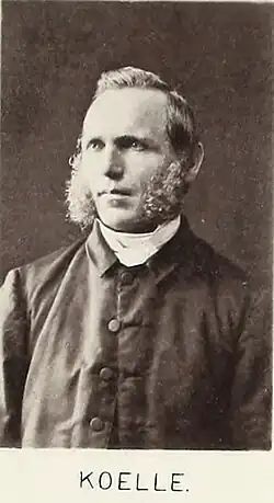 Sigismund Wilhelm Koelle or Kölle (July 14, 1820[1] – February 18, 1902) was a German missionary working on behalf of the London-based Church Missionary Society, at first in Sierra Leone, where he became a pioneer scholar of the languages of Africa, and later in Constantinople (Istanbul). He published a major study in 1854, Polyglotta Africana, marking the beginning of serious study by Europeans of African languages.