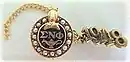 The fraternity's badge was a circle of purple enamel with the Greek letters ΣΝΦ above a lamp; it was encircled by pearls and featured an owl perched on an open book at the top of the circle.[5] Before 1921, some chapters had a pin or guard that consisted of its Greek letter, surrounded in pearls, that was worn attached to the badge.[26] However, the fraternity stated that these were forbidden in November 1921.[26] A variant without the pearls was issued by the fraternity in 1934.[5]