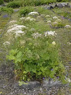 Siler montanum, the laserwort, is a herbaceous perennial plant in the family Apiaceae. It is a robust perennial that can reach a height of about 30–100 centimetres (12–39 in). It has bipinnate, alternate leaves, and produces compound umbels of white five-stellate flowers from June to August.[2]