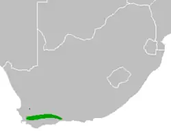 It is native to the South African provinces of Western Cape, Eastern Cape and southern KwaZulu-Natal. The plants grow on dry rocky surfaces in the Succulent Karoo.[3]