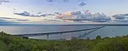 As the aging Ulyanovsk bridge, the only crossing of the Volga in the 400 km stretch from Kazan to Tolyatti, could no longer cope with the growing needs of the city, the construction of President Bridge, a truss bridge, began in the late 1980s. Completion was delayed significantly due to catastrophic economic circumstances following the end of the Soviet Union. Its official opening ceremony was on November 24, 2009, by the Russian President Dmitry Medvedev – although traffic was using the bridge a few days earlier. The bridge has a total length of 5.5 km, making it one of the longest in Europe.[24]