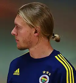 At the start of the 2016–17 season, Kjær captained in both legs of the UEFA Champions League third round qualifying round against AS Monaco, losing 4–3 on aggregate.[283][284] In a match against Kayserispor on 28 August 2016, he scored Fenerbahçe's first goal of the game but was sent off for a straight red card nine minutes later, as the club drew 3–3.[285][286] After serving a one match suspension, Kjær scored on his return in the UEFA Europa League match against Zorya Luhansk on 15 September 2016.[287][288] Since returning from suspension, he continued to regain his first team place, playing in the centre-back position.[289][290][291][292][293] Two months later on 24 November 2016, Kjær scored against Zorya Luhansk in the UEFA Europa League match, as the club won 2–0.[294] He then helped the club keep two consecutive clean sheets on two separate occasions throughout December.[295][296][297][298] However, later in the 2016–17 season, Kjær was plagued with injuries on five occasions.[299][300][301][302][303] Despite this, he continued to be involved in the first team for Fenerbahçe.[304][305][306] In his second season at the club, Kjær went on to make 43 appearances and scoring three times in all competitions.