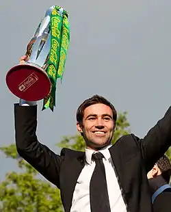 ![]() Lappin celebrating promotion to the Championship with Norwich City in 2010 | |||