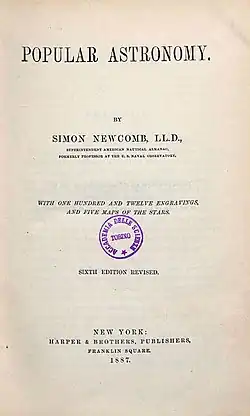 - ^ Campbell, W. W. (1924). "Simon Newcomb". Memoirs of the National Academy of Sciences. p. 14