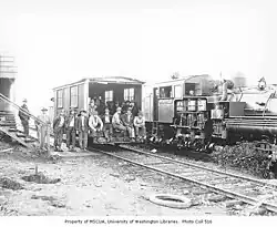 - ^ "Loggers with transport car and Shay locomotive, Camp 7, Simpson Logging Company, Grays Harbor County, Washington, approximately 1928". University of Washington Libraries. Retrieved June 8, 2024.