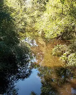 Sims Creek is a 4.7-mile-long (7.6 km)[1] tributary of the Tangipahoa River in the 8th Ward of Tangipahoa Parish, Louisiana. It flows generally southeast from near Robert, and is joined about halfway down its course by its longest tributary, P-Kaw-Shun Creek, which begins north of Lorraine and flows southwest, passing under US 190 and Interstate 12, to its confluence with Sims Creek. The main creek then continues southwest, passing under LA 445, and meets the Tangipahoa River 4 miles (6 km) south of Robert. The creek is part of the Lake Pontchartrain Basin and thus sensitive to its ecology.[2] In 2007, the attorney general of Louisiana issued a legal opinion that a private fence could not lawfully be constructed across Sims Creek, because of its importance to public drainage.[3]