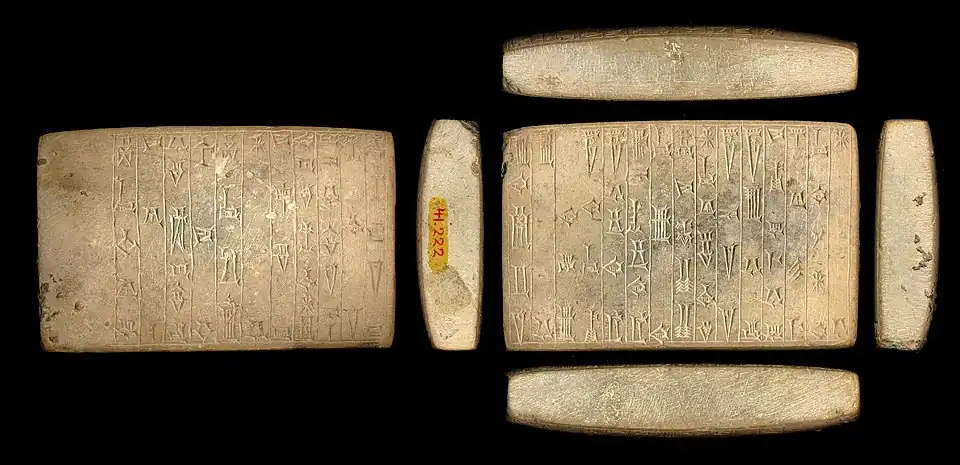 Stamping mold for the foundation bricks of the temple of the Sun-God Utu in Larsa. The inscription relates the construction of the Ebbabar ("the shining temple") by Sin-iddinam, king of Larsa -