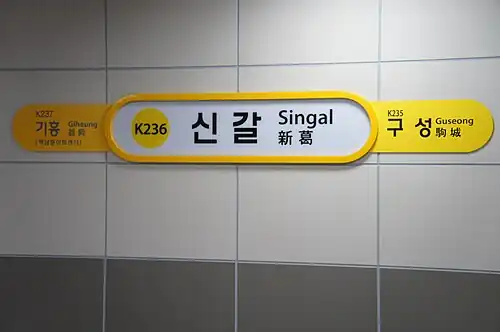 Singal Station is a subway station of the Suin–Bundang Line. It was opened in December 2011, as part of the Giheung extension of the Bundang Line.