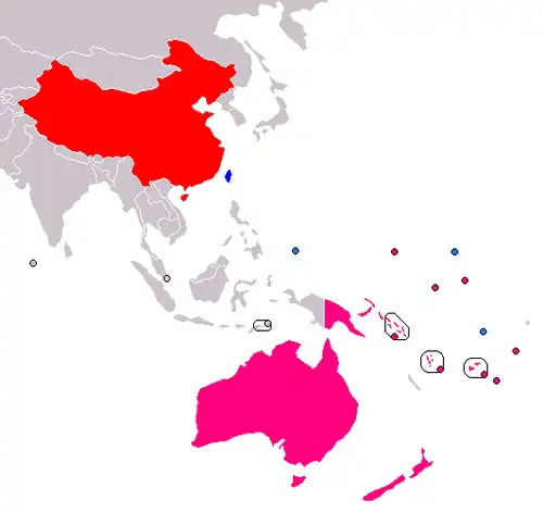 Taiwan has asked to be recognised as an official dialogue partner of the Pacific Islands Forum. That status is currently awarded to China.[39]