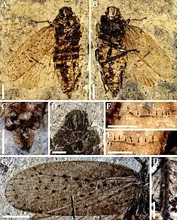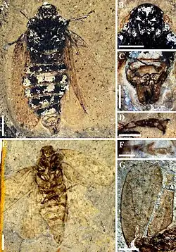 - ^ Chen, Jun; Wang, Bo; Zheng, Yan; Jarzembowski, Ed; Jiang, Tian; Wang, Xiaoli; Zheng, Xiaoting; Zhang, Haichun (2019-12-17). "Female-biased froghoppers (Hemiptera, Cercopoidea) from the Mesozoic of China and phylogenetic reconstruction of early Cercopoidea". Journal of Systematic Palaeontology. 17 (24): 2091–2103. doi:10.1080/14772019.2019.1587526. ISSN 1477-2019. S2CID 146114370.
