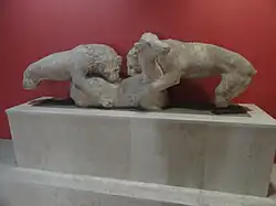The stone works hall, reserved for the veneration of the dead, contains examples of the oldest steles from the Archaic period in Anatolia. A marble sculpture depicting two lions savaging a deer, and a sarcophagus of a seaman are on display in this hall.[5]