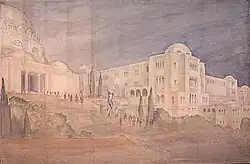- The David Wolffsohn University and National Library, Hebrew University, Jerusalem. Design by Patrick Geddes, Frank Mears and Benjamin Chaikin, inaugurated on 15 April 1930.[34]