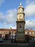 | Picton Clock Tower | Wavertree, Liverpool 53°23′54″N 2°54′57″W / 53.3982°N 2.9158°W | ![]() | 1884 | Erected by Picton as a memorial to his wife. It now stands surrounded by a roundabout. The tower is in three stages with a clock face in each of its four sides. At the top is a lead cupola with a short spire. Around the base are four iron lamp posts.[27][28] | II |