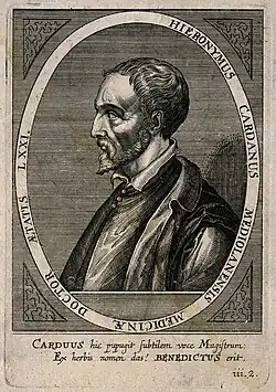 - ^ Cardano was returning from Edinburgh where he had attended John Hamilton, see H. Morley, Jerome Cardan. The Life of Girolamo Cardano, of Milan, physician, 2 vols (Chapman and Hall, London 1854), II, pp. 132-34 (Internet Archive).
