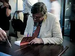 In 2000, he began starring as Charles Prentiss in the Radio 4 comedy Absolute Power, reprising the role for three further series on radio, and two on television. In 2002, he played The Minister of Chance in the Doctor Who audio drama Death Comes to Time.[55] In 2002, Fry was one of the narrators of A. A. Milne's Winnie-the-Pooh and The House at Pooh Corner, in which he voiced Winnie-the-Pooh. He presented a 20-part, two-hour series, The Incomplete and Utter History of Classical Music, a "witty guide" to the genre over the past 1,000 years, on Classic FM. In 2004 he was the narrator for an adaptation of Vanity Fair on BBC Radio 4.[56] Fry has been the reader for the British versions of all of J. K. Rowling's Harry Potter series of audiobooks. He discussed this project in an interview with Rowling in 2005.[57] He has also read for Douglas Adams' The Hitchhiker's Guide to the Galaxy film tie-in edition and has made recordings of his own books, such as The Stars' Tennis Balls and Moab Is My Washpot, and of works by Roald Dahl, Michael Bond, A. A. Milne, Anthony Buckeridge, Eleanor Updale, George Orwell, and Alexander Pushkin.