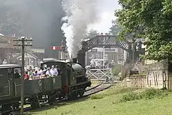 An acknowledged railway enthusiast, McAlpine returned to Hayes depot during the Beeching Axe to find that the company's Hudswell Clarke 0-6-0ST No.31 was for sale for £100. He purchased the locomotive, and moved it to his country estate home.[5] This marked the start in 1961 of the 4 ft 8+1⁄2 in (1,435 mm) standard gauge Fawley Hill Railway, a private railway which now runs to over a mile long and has the steepest gradient at 1:13 on a British railway.[6]