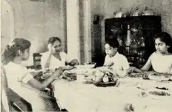 After completing her schooling at age 19,[17] Sirima Ratwatte became involved in social work, distributing food and medicine to jungle villages, organising clinics and helping create rural industry to improve the living standards of village women.[2][16] She became the treasurer of the Social Service League, serving in that capacity until 1940.[18] Over the next six years, she lived with her parents while they arranged her marriage.[17] After rejecting two suitors – a relative, and the son of the first family of Ceylon – Ratwatte's parents were contacted by a matchmaker who proposed a union with Solomon West Ridgeway Dias (S.W.R.D.) Bandaranaike,[14] an Oxford-educated lawyer-turned-politician, who was at the time Minister of Local Administration in the State Council of Ceylon.[16] Initially, S.W.R.D. Bandaranaike was not considered to be from an "acceptable" family, as the Ratwattes were an aristocratic Kandyan family, which had inherited their service to the traditional royal family, while the Bandaranaikes were a wealthy family from the low-country, which had been in service of the colonial rulers for centuries.[16] Astrologers reported their horoscopes were compatible, the benefits of uniting the families was weighed, and approval was given by the Ratwatte family.[14] The couple, who had previously met, were in agreement with the choice.[14][19]
