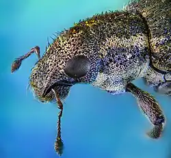 - ^ Morley-Senkler, Vivian; Williams, Jonathon; Vankosky, Meghan (April 2020). "Effect of temperature, population density, and sex on feeding damage caused by adult pea leaf weevil (Coleoptera: Curculionidae)". The Canadian Entomologist. 152 (2): 159–168. doi:10.4039/tce.2019.76. ISSN 0008-347X. S2CID 213978416.