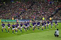 The Manu Siva Tau is a Samoan war dance, performed by the Samoan sporting teams before each match.