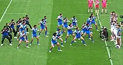 The Manu Siva Tau is a Samoan war dance, performed by the Samoan sporting teams before each match.