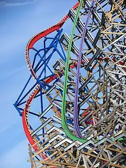 Roar - A Great Coasters International wooden coaster. It opened on May 14, 1999, and closed on August 16, 2015. The ride was re-themed and reopened with a new steel track as The Joker in May 2016.