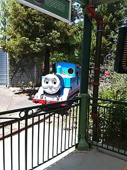 Seaside Railway – Train ride around the Shark Experience passing: Tidmouth Shed, Lake Hackenbeck, Hackenbeck Station. It was known as Thomas the Tank Engine from 2007–2010 in Thomas Town and re-themed in 2011. Riders used to board into Thomas' coaches Annie and Clarabel. The engine still has Thomas' whistle.