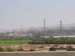 Six Flags Magic Mountain, formerly known and colloquially referred to as simply Magic Mountain, is a 209-acre (85 ha) amusement park located in Valencia, California, 35 miles (56 km) northwest of downtown Los Angeles. It opened on May 29, 1971, as a development of the Newhall Land and Farming Company and Sea World Inc.[2] In 1979, Six Flags purchased the park and added "Six Flags" to the park's name.