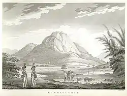 Skandagiri, also known as Kalavara Durga, is a mountain fortress located approximately 62 km (39 mi) from Bangalore city, and 3 km (1.9 mi) from Chikballapur in the Indian state of Karnataka. It is off Bellary Road (National Highway 7 Hyderabad-Bangalore Highway), and overlooks Nandi Hills and Muddenahalli. The peak is at an altitude of about 1,450 m (4,760 ft). It is accessed from Kalavara village, which has a population of, 1093 according to 2011 census.[1] The hill features the ruins of a fort believed to have been built by Tipu Sultan, the ruler of the Kingdom of Mysore. It was used as a military stronghold and lookout point.