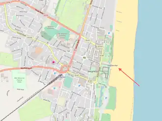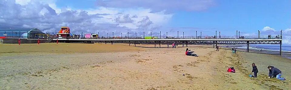 The present day pier length is 387 ft (118 m)[1] long, with no remaining evidence of the former pierhead and shelters.[7] A bowling alley was built in 1992 with a complete refurbishment programme starting in January 2000 to recapture its classic charm.[13] Despite its much reduced length, it is a major landmark along the beach visible as far as Gibraltar Point to the south and Ingoldmells to the north.