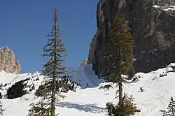 Famous pioneer of ski-BASE jumping Shane McConkey died in an accident during a ski-BASE jump at the mountain Sass Pordoi in the Dolomites of Italy in 2009 when he was unable to release his skis before deploying his parachute.[37] The mountain was 600 metres above ground level and located next to the renowned ski resort of Corvora. After performing a double back-flip from the cliff face, he was flipped upside down due to a technical issue with releasing his skis. McConkey was unable to release the parachute prior to reaching the ground.[9] He was 39 years old. McConkey had already BASE jumped the same cliff the year before and was yet to attempt a ski-BASE jump from the mountain.[38]
