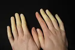 - ^ Sequeira, Winston; Block, Joel A (2001-06-23). "Raynaud's phenomenon". The Lancet. 357 (9273): 2042–2048. doi:10.1016/S0140-6736(00)05118-7. ISSN 0140-6736. PMID 11438158. S2CID 27272970.