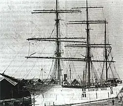 Skomvær was the name of a steel-hulled barque built in 1890 for J. C. & G. Knudsen in Porsgrunn, Telemark, Norway.[1] The ship, which was designed by naval architect Randulf Hansen and constructed at Laxevaags Maskin- og Jernskibsbyggeri in Bergen, was the first sailing ship constructed with steel in Norway and for a time the largest Norwegian sailing vessel ever built.[1][2][3] However, the ship struggled to compete in the 20th century with the advent of the steamship, and in 1924 she was decommissioned and sold for scrap.[1][4]