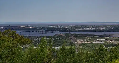 Skyline Parkway is a scenic byway in Duluth, Minnesota.[1] The road stretches 28 miles (45 km) from Becks Road to Seven Bridges Road,[2] and is split into West Skyline Parkway and East Skyline Parkway. It follows the ancient shoreline of Glacial Lake Duluth.[3] The byway is known for its views of Duluth, Superior, Wisconsin, the Saint Louis River and Lake Superior.
