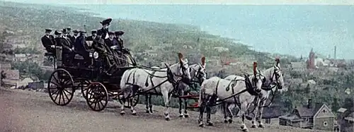 Skyline Parkway is considered "Duluth's First Tourist Attraction".[5] It was conceived by William K. Rogers, the city's first park board president,[6] in 1888. Rogers was a businessman and graduate of Harvard Law School who first arrived in Duluth in 1870. He came to Duluth to invest in the budding community. Construction began in April 1889 on Tenth Street, and by August the road was being used.[3] The road slowly began to crawl west, but construction was difficult due to the terrain and rock. The road lacked an official name but was known locally by several names. Terrace Parkway, The Boulevard, the Boulevard Drive, Lake View Terrace, or Bay View Terrace were all used. By 1892, the Boulevard ran 5 miles (8.0 km) from Chester Bowl to Lincoln Park.