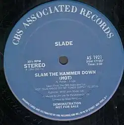 "Slam the Hammer Down" is a song by the British rock band Slade, released in 1984 as a promotional-only single from the band's American studio album Keep Your Hands Off My Power Supply.[1] It was written by lead vocalist Noddy Holder and bassist Jim Lea, and produced by Lea.