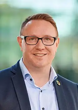In the 2017 state election, the SSW backed to 3.3% of the votes, but retained three seats in the Landtag. However, since the government coalition parties lost their Landtag majority, a new government was formed without the SSW, which again joined the opposition. Exempt from the threshold of 5%, it won a seat in the 2021 German federal election with 0.1% of the vote nationwide, its first federal seat since the inaugural 1949 West German federal election.[12][13] Though unlikely to change the balance of power in any way, Stefan Seidler sits as its Member of the German Bundestag.[14]