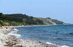 The hills, coastline, and sea by the lighthouse attract visitors. Close to the lighthouse is Tyskertårnet, the German Tower, a watchpoint built during WW2 for surveillance of the Kattegat in occupied Denmark. A hill up from the lighthouse, Ellemandsbjerg, 99 meters above sea level is a viewpoint. From here one can see southern Djursland, the Mols Hills, and the eastern coast of Jutland, plus the islands, Tunø, Samsø and Hjelm, as well as the Ebeltoft-peninsula. On a clear day, one can also see Denmark's largest island, Zealand to the southeast. Here Denmark's capital Copenhagen is located. The coast of Sletterhage Lighthouse is visited by anglers and divers. The south-facing hills surrounding the lighthouse have a dry microclimate giving living conditions for several not often seen insects, including some butterfly species.[4]
