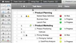 According to Forbes, Smartsheet has "a relatively simple" user interface.[2] The interface centers on "smartsheets," which are similar to spreadsheets typically found in Microsoft Excel.[7][8] Each smartsheet can have its rows expanded or collapsed to see individual tasks or large-scale project progress respectively. Tasks can be sorted by deadline, priority or the person assigned to them.[9] If a spreadsheet contains dates, Smartsheet creates a calendar view.[9]