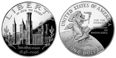 - ^ "Text of H.R. 2627 (104th): Smithsonian Institution Sesquicentennial Commemorative Coin Act of 1995 (Passed Congress version)". GovTrack.us. Retrieved 2022-06-12.